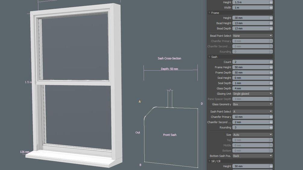 - Window furniture models (mesh presets) and 'bearing profile' test scene.